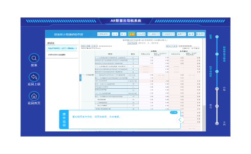 AR智慧云导税系统以情景化教学、交互式操作、体验式学习等先进理念为指导,以 先进的智慧云导税平台为支撑,实现了电子税务局、自然人电子税务局、社保缴费客户 端等税务软件模拟仿真功能,实现了全流程语音指导、申报表动画填报指导、申报表模 拟填报、自我检测学习效果、最新税收政策推送等功能,实现了AI自然人语音识别、 智能搜索等快速定位功能,实现了智能云更新功能。